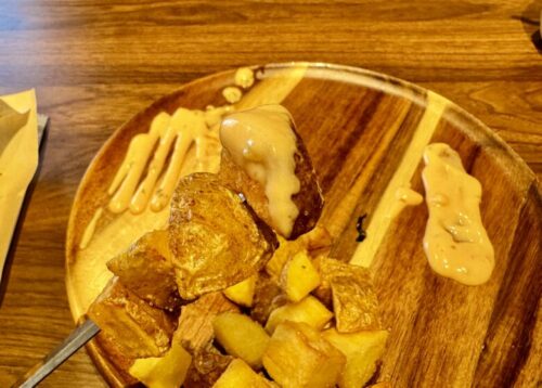 付け合わせのソースと絡めて食べるのが、店主おすすめ。それにしても写真がものすごく茶色だ(笑)