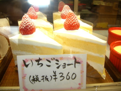 定番のいちごのショートは、いちごももちろん地元産。今はイチゴが美味しい旬とのことで、イチゴを中心とした各ケーキの種類となっています。