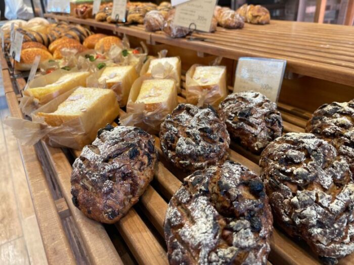 店内には、食パンやフランスパン、食事系のパンやスイーツ系のパン、サンドイッチなどが並び、レジには平日でも列ができるほどの人気っぷりです。