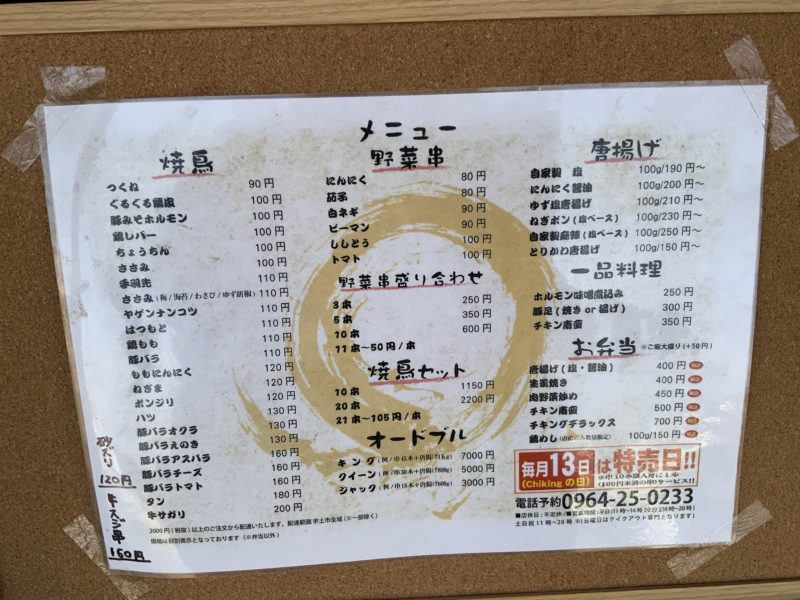 テイクアウトで”ちょうちん”ってはじめて見た!しかも100円!宇土市にできた焼き鳥・からあげ店「チキング」の焼き鳥がコスパ良し!