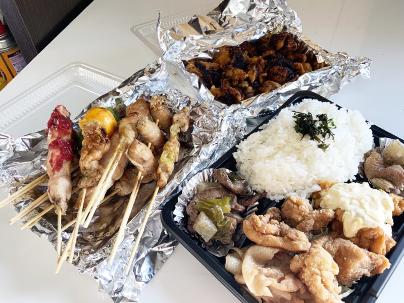 突然ですが、目の前にはなぜか大量の焼き鳥とエゲツないボリュームの弁当と、麻辣唐揚げなる名前からして辛そうな唐揚げが並んでいます。