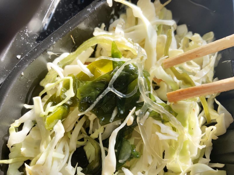 しかもお肉の下に隠れている野菜がただのキャベツじゃなくて、海藻サラダ!!!なにこれ嬉しい。