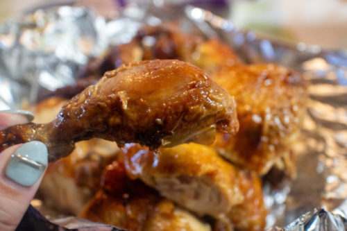 骨付きのチキンにかぶりつく瞬間、幸せな気持ちが広がります。