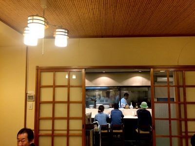 カウンターとテーブル、左は座敷になっています。