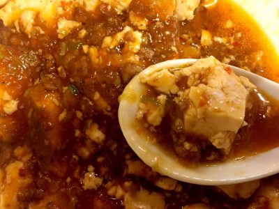 辛さとしては山椒を感じピリッと辛さを感じますが断然、麻婆豆腐のうま味の方が勝っています。また、一口、また一口・・・と口に運びたくなる麻婆豆腐。
