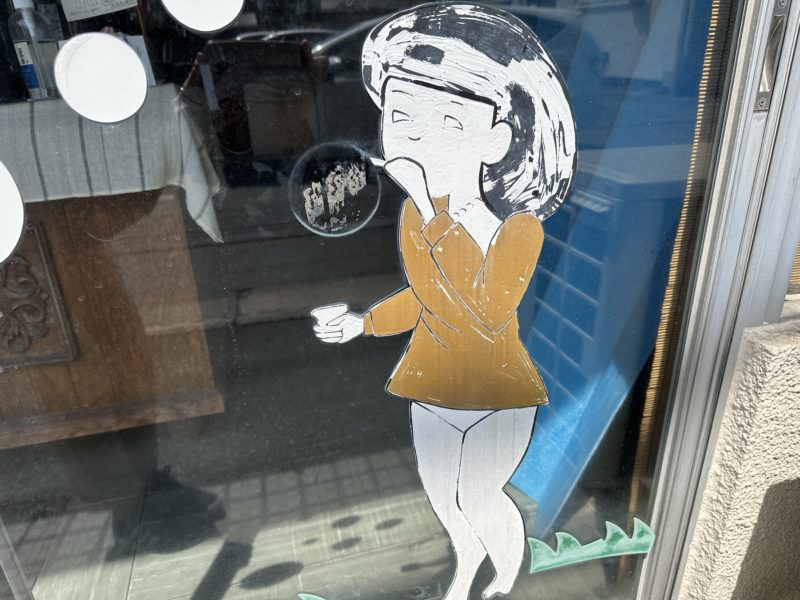 この子の事が知りたくて「はらのクリーニング」のご主人にお話をお聞きしたところ、50年以上前に当時近所に住んでいた、能面師の青木定夫さんに描いていただいたそう。