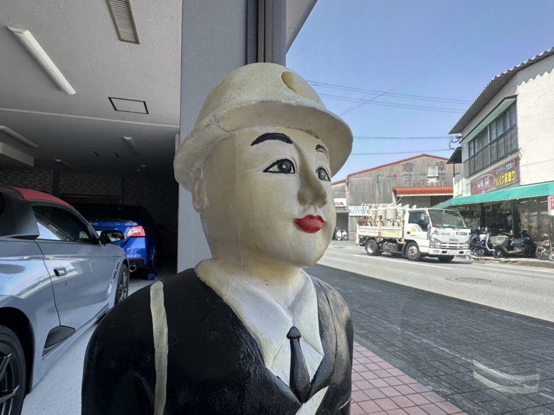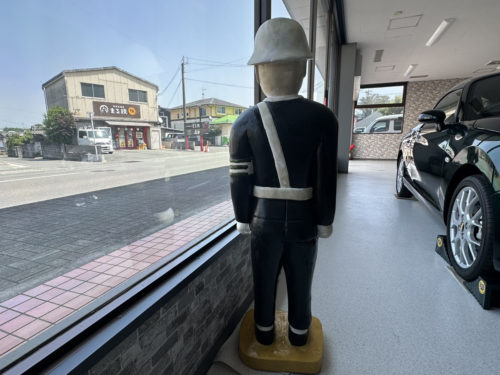 この「まもるくん」に名前はないそうだが、カーショップの見張り番として毎日見張ってくれているそうです。