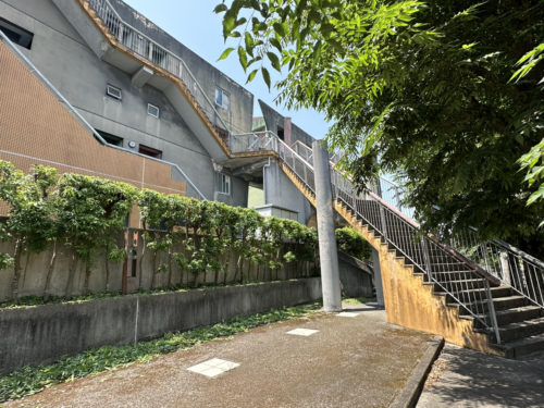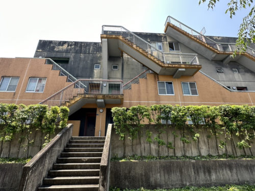 この団地は1995年にくまもとアートポリス事業によって建てられた団地らしく、創造的なつくり。