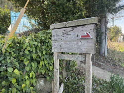 絶対に見落とす看板があります。この看板の反対側の海の方に、小田良古墳と呼ばれる、小さな古墳があります。