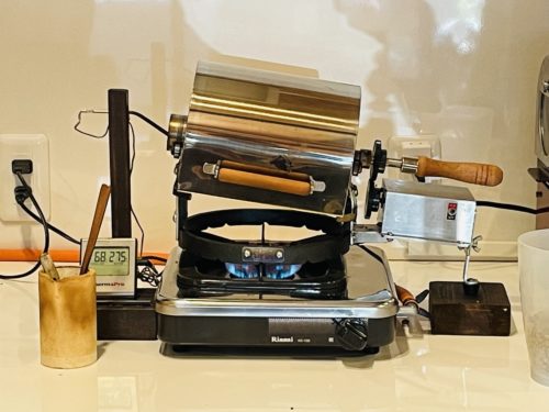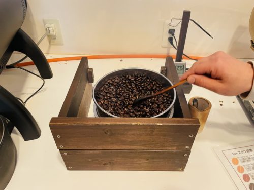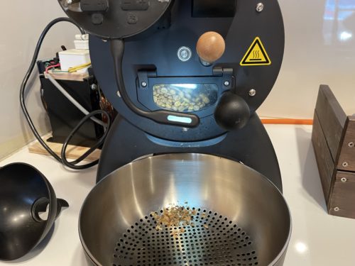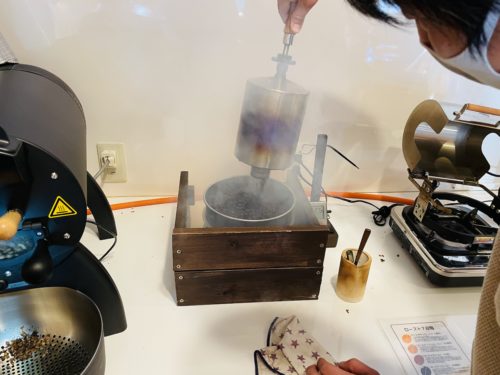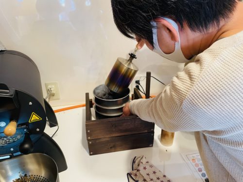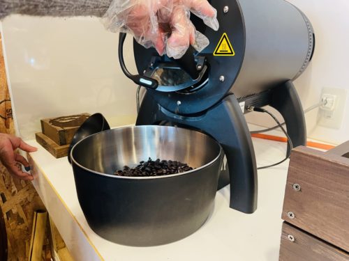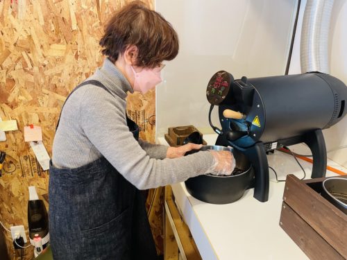 こんな焙煎機。私は深入りが好きなので、色がとても黒くなるまで焙煎してもらいました。