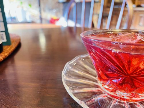 もうすぐ販売をやめられる予定だそうですが、特別にハイビスカスティーも頂きました。ぎゅぎゅっと南国の味。