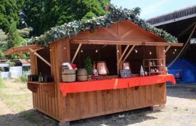 マーケットの店舗小屋として会場に立ち並ぶこちらのヒュッテは、熊本県産の木材を使って作られているというこだわりっぷり!