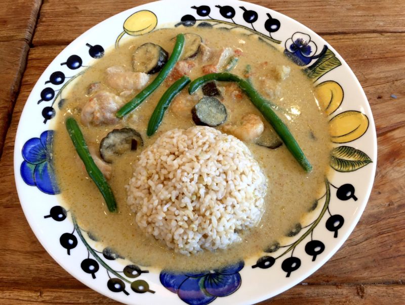 ハンバーグもカレーも美味しそうですがグリーンカレーにしてみました。