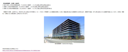 「高いものには訳がある」とはよく言ったもので、大津町の土地上昇率が全国1位!なのも、TSMCの進出が要因のひとつなのでしょう。