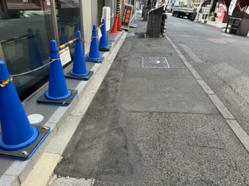 1坪の大きさが畳でいえば大体2枚分ですから、ちょうどここから赤のコーンがあるあたりでしょうか。