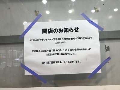 「この度当店はビルの建て替えの為、1月6日の営業をもちまして閉店させて頂く事になりました」