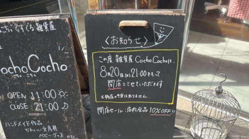 【熊本市中央区】雑貨屋Cocho Cocho(コチョコチョ)が8月20日で閉店しちゃうんだって… 閉店セールもやってるので是非行ってほしい。