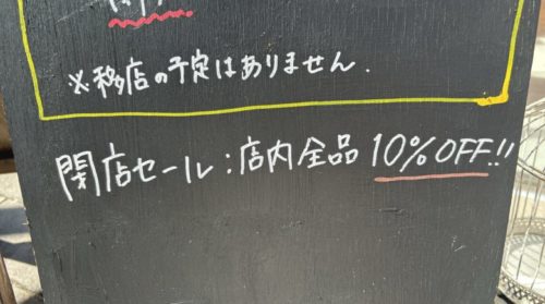 閉店までは閉店セールとして店内商品が全品10%OFF!