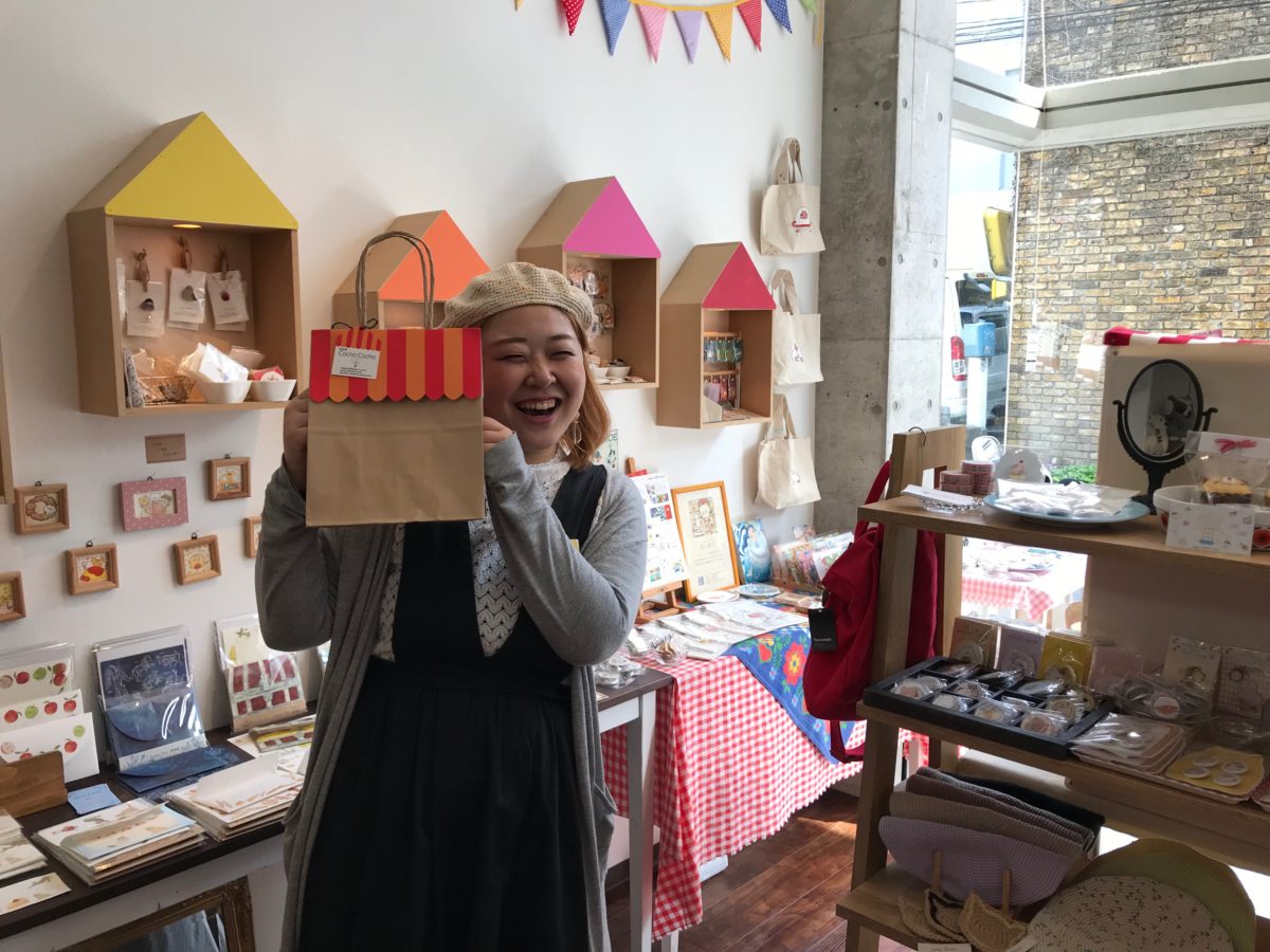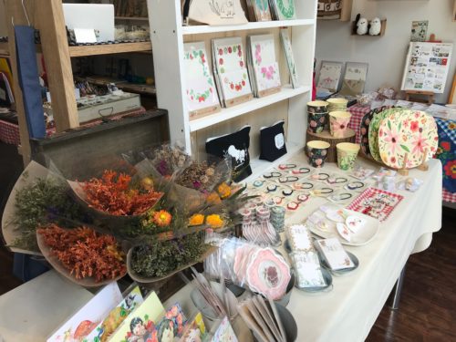 外からも作品が見えるので「あれ?かわいいのがたくさんあるよ!」とお客さんが続々と入って来られました。