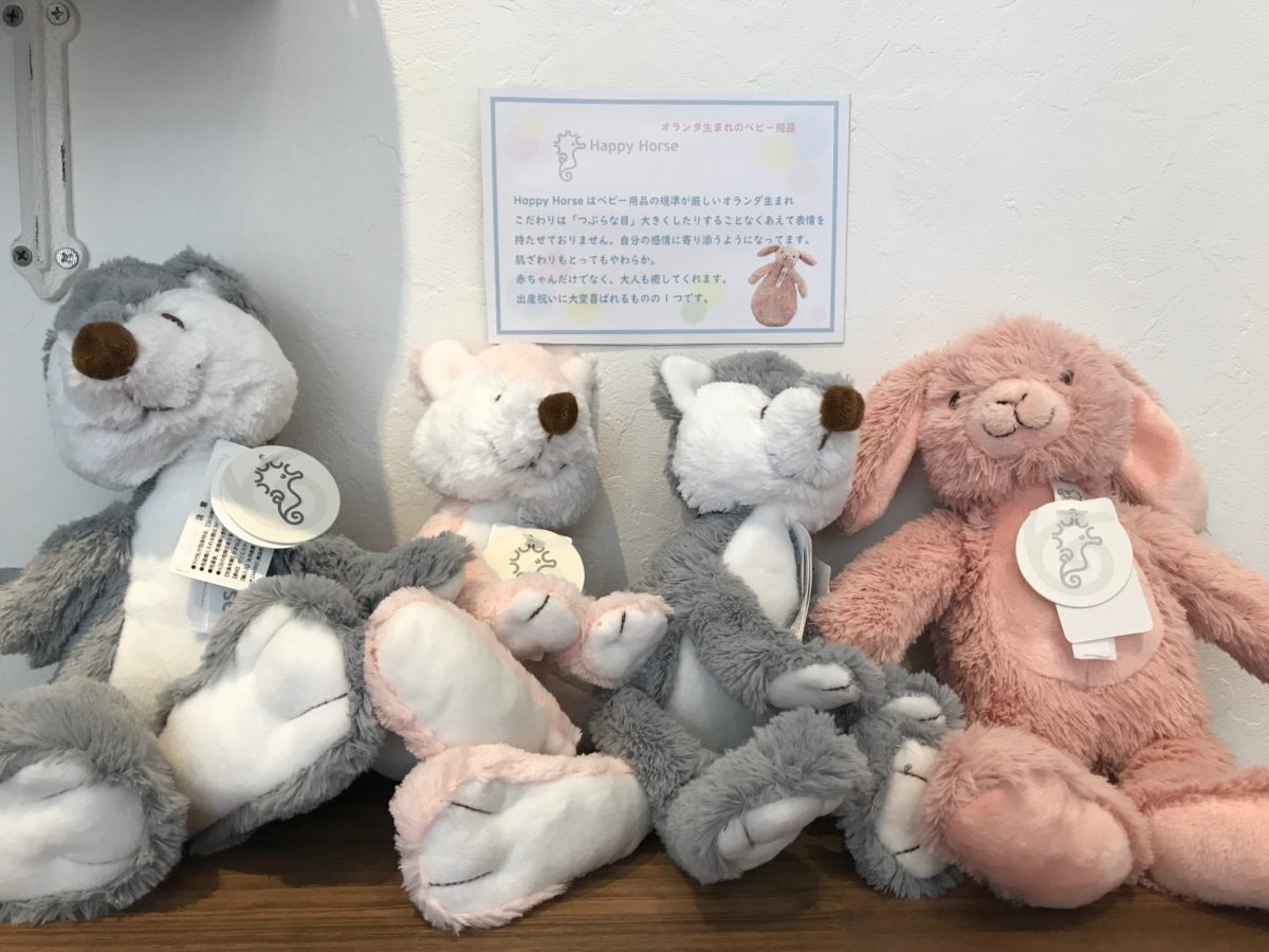 オランダのベビー用品「ハッピー・ホース」は製作にとてもこだわりがあるそうです。万が一赤ちゃんがお口に入れても安全で、丸洗いできる素材を使用しています。表情をあえて作らず子供の感情に寄り添う表情なのだとか。お祝いなどに選ばれることが多いそうですよ!