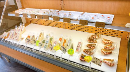 店内のショーケースには美味しそうなフルーツサンドやフルーツ大福が並んでいます…!