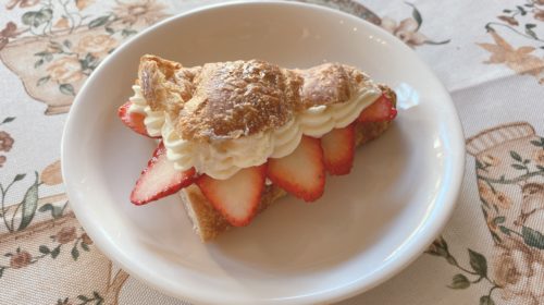 クロワッサンから飛び出したいちごとクリームが何とも可愛い!!クロワッサン×クリーム×いちごの最強の組み合わせを発見してしまいましたね..。