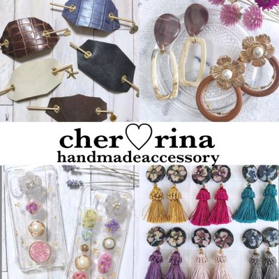 アクセサリー・雑貨販売の「cher♡rina 」。「大人可愛い華やかアクセサリー」をテーマに、flowerモチーフをメインにした彩りに拘ったアクセサリー、雑貨を製作しています。