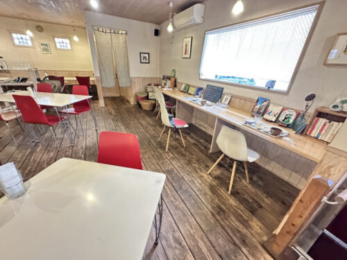 カウンター席はこんな感じで、本など読みながらお昼を過ごすとリラックスできそうです。