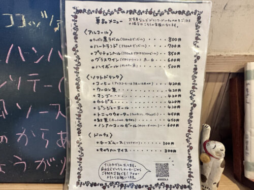 ドリンクのみの単品メニューなどもあります。