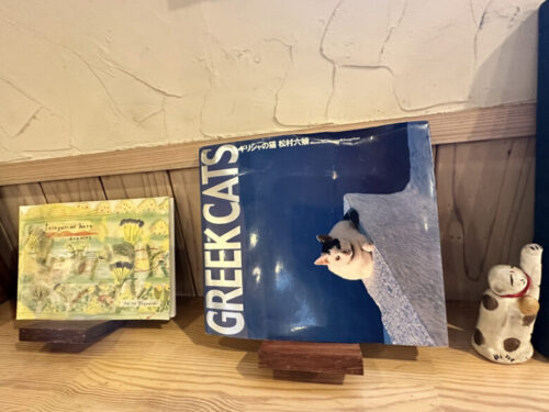 カウンターにもネコちゃんの写真集や絵本などが並べてあります。