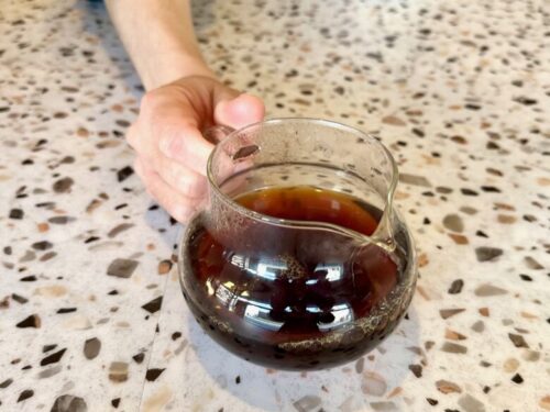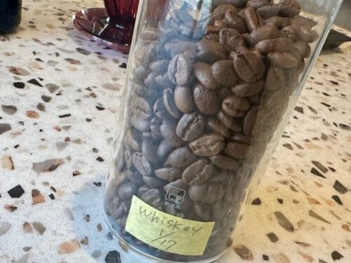 今回は、生豆をアイリッシュウイスキーに2日ほ漬け込み、乾かして焙煎したとのこと。