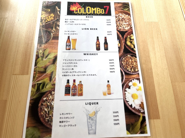 ドリンクメニューにはアルコールもあります。