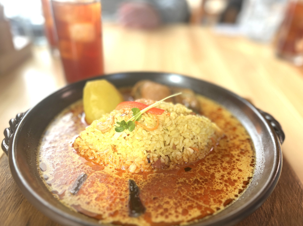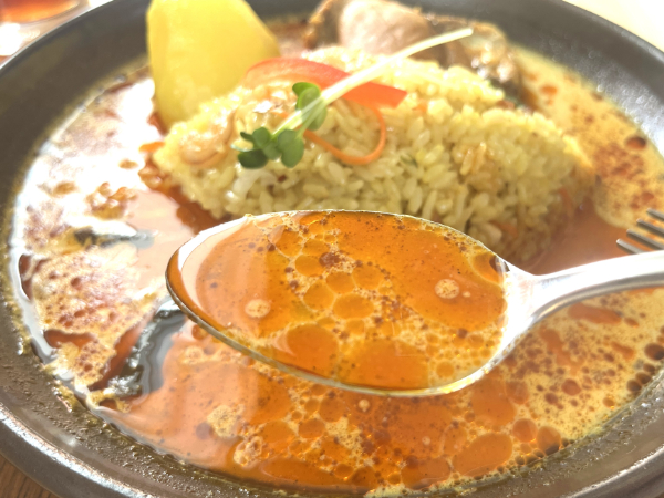 こちらのカレーは辛さを極力抑えてもらったのですが、ココナッツの風味の中にもぴりっとしたスパイスを感じます。まるで野菜スープのような優しい味わいに仕上がっています。
