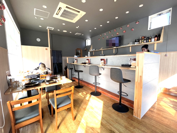 店内はシンプルながらお洒落。カウンター席とテーブル席があります。