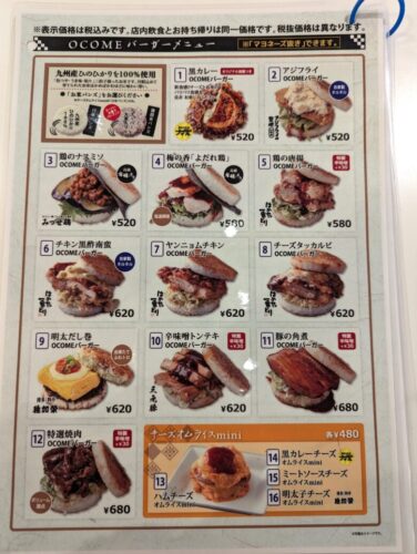 まずはcomecomeバーガーのOCOMEバーガーメニュー。