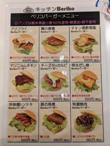続いてキッチンBerikoのべリコバーガーメニュー。
