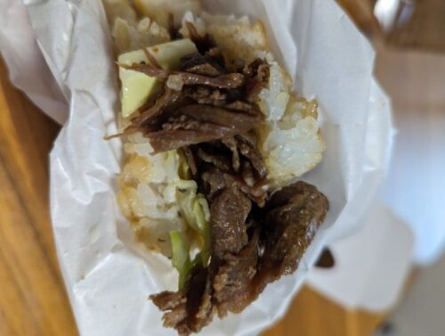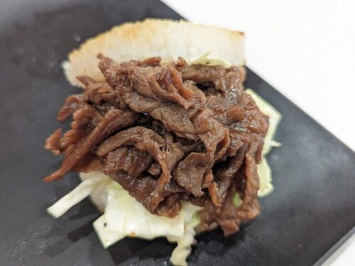 ライスバンズから完全にはみ出した焼肉にびっくり!