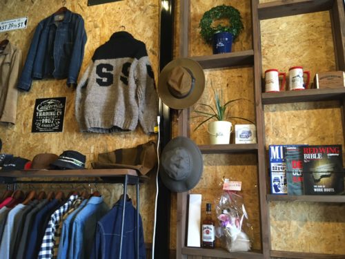 カウンターにテーブル、壁に掲げられているポスターやナンバープレート、洋服や帽子など、アメリカンテイストで、なにもかもオシャレ!