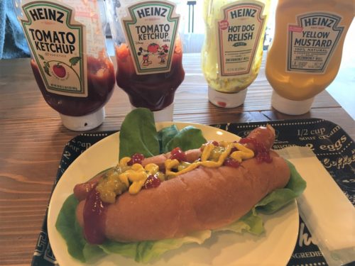 お店一押しのホットドッグは、ケチャップ2種類・マスタード2種類が一緒に提供され、ソースは自分で好きなだけかけることができます。なんだかコストコみたいで、嬉しいシステム!