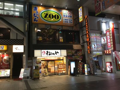 場所は新市街アーケード沿い。1階に「松のや」が入るビルの2階にあります。