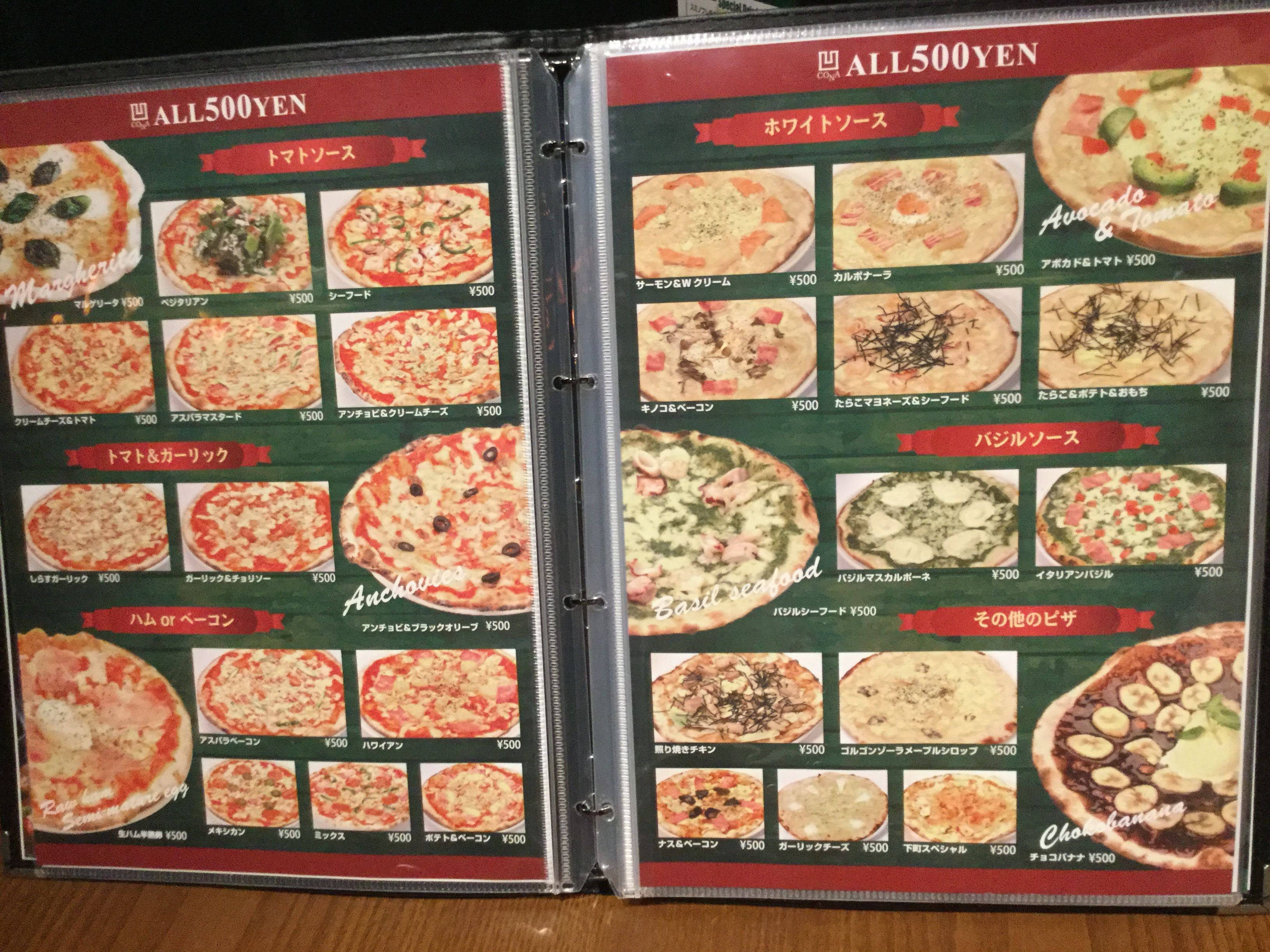 メインのピザも30種類が全部500円!!