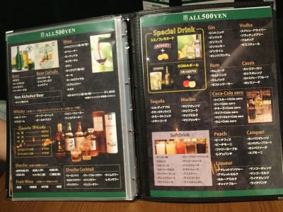 お酒もすべて500円なので、単品でもあまりお値段を気にせずに飲めますね!!