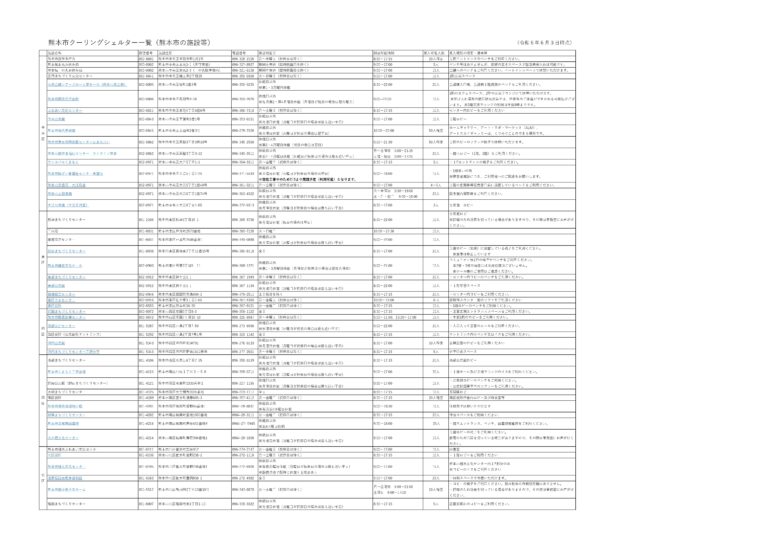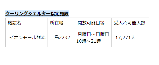 熊本市でクーリングシェルターに指定されている場所は以下のとおりです。