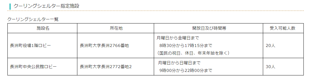 玉名郡長洲町でクーリングシェルターに指定されている場所は以下のとおりです。