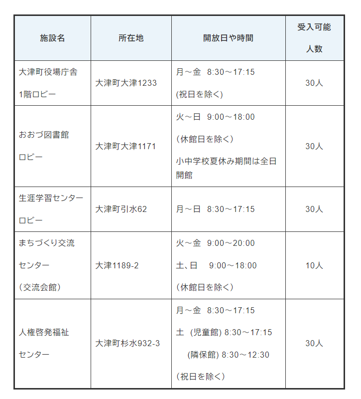 菊池郡大津町でクーリングシェルターに指定されている場所は以下のとおりです。