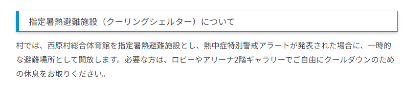 阿蘇郡西原村でクーリングシェルターに指定されている場所は以下のとおりです。