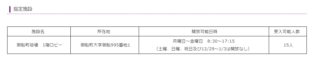 上益城郡御船町でクーリングシェルターに指定されている場所は以下のとおりです。