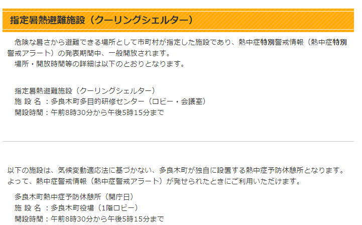 球磨郡多良木町でクーリングシェルターに指定されている場所は以下のとおりです。