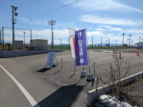 COSMOS CAFÉさんへの目印はそのサッカー場への入り口にある旗だけ!?看板もありません。