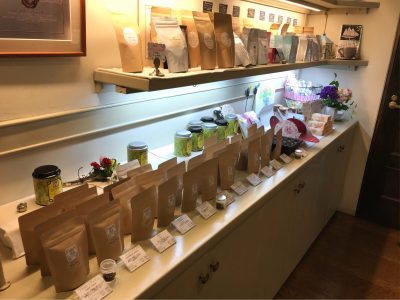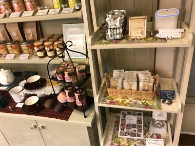お店に入ると、まず入り口にテイクアウトの紅茶と、スコーンなど紅茶のお供に最適なお茶菓子が販売されています。